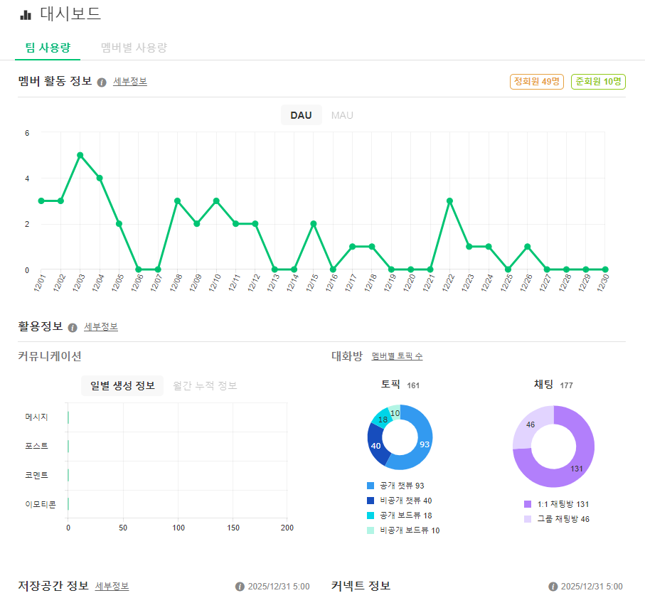 ✅ 팀 사용량 대시보드