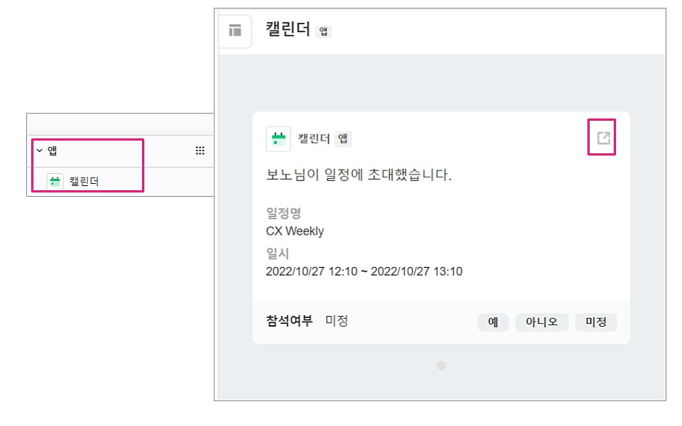 캘린더앱 메시지를 통해 접속