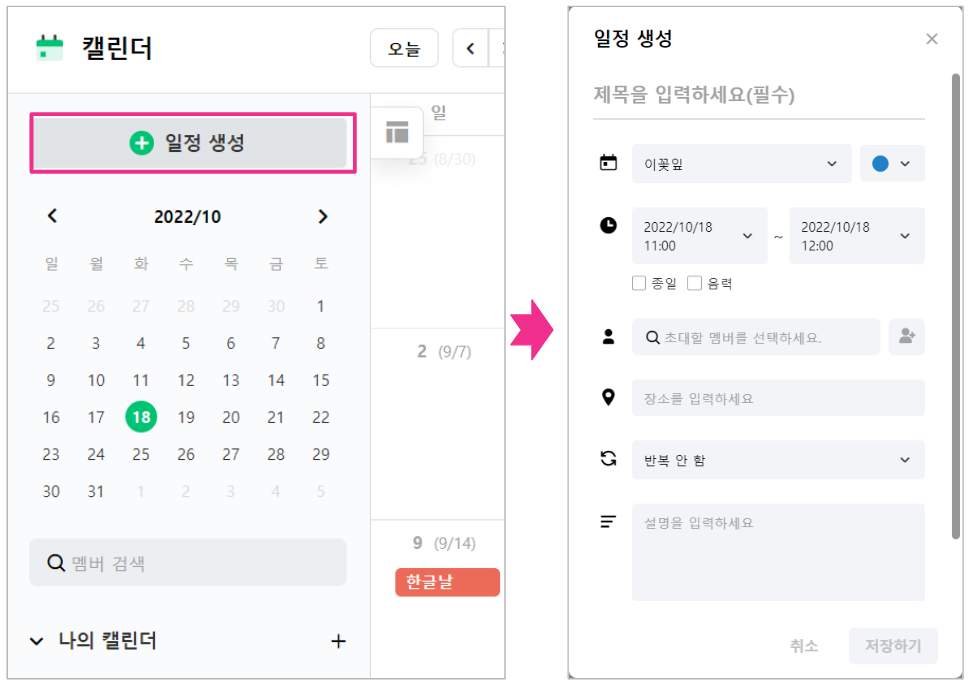 - 일정 공개 : 초대되지 않은 멤버도 일정의 상세 내용을 확인할 수 있습니다.
