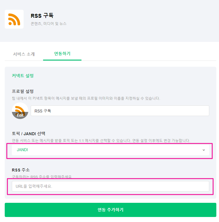 잔디 커넥트에서 RSS 연동을 추가합니다.