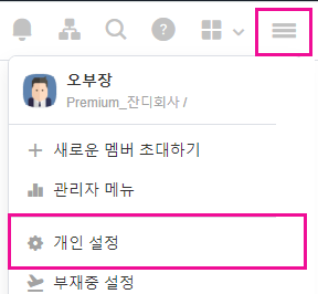 잔디 화면 상단의 [≡] - [개인 설정] - [기본 설정] - [테마 설정]에서 변경하실 수 있습니다.