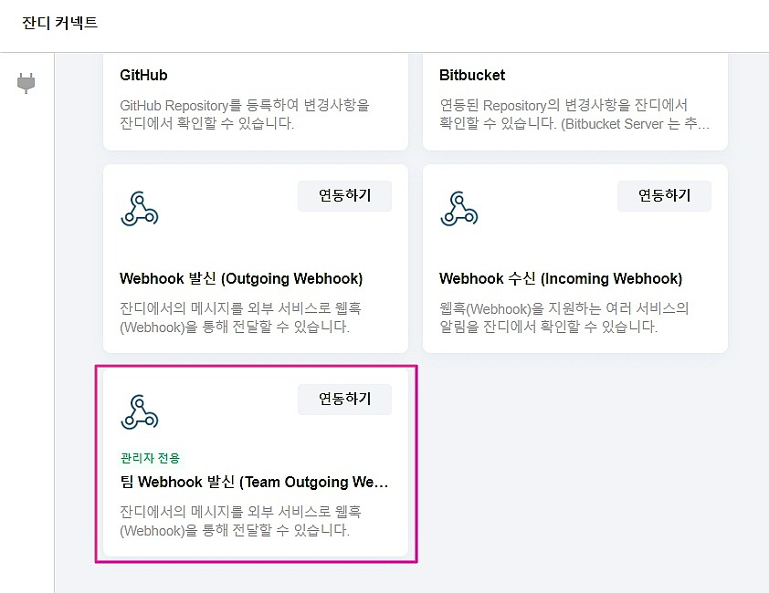 커넥트 목록 -> 팀 Webhook 발신 (Team Outgoing Webhook) 선택