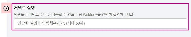 ③ 커넥트 설명 : 커넥트에 대한 설명을 입력하여 팀내 구성원들이 더 잘 활용할 수 있도록 합니다.