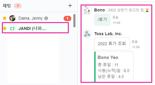 <연차 현황 확인 메시지>