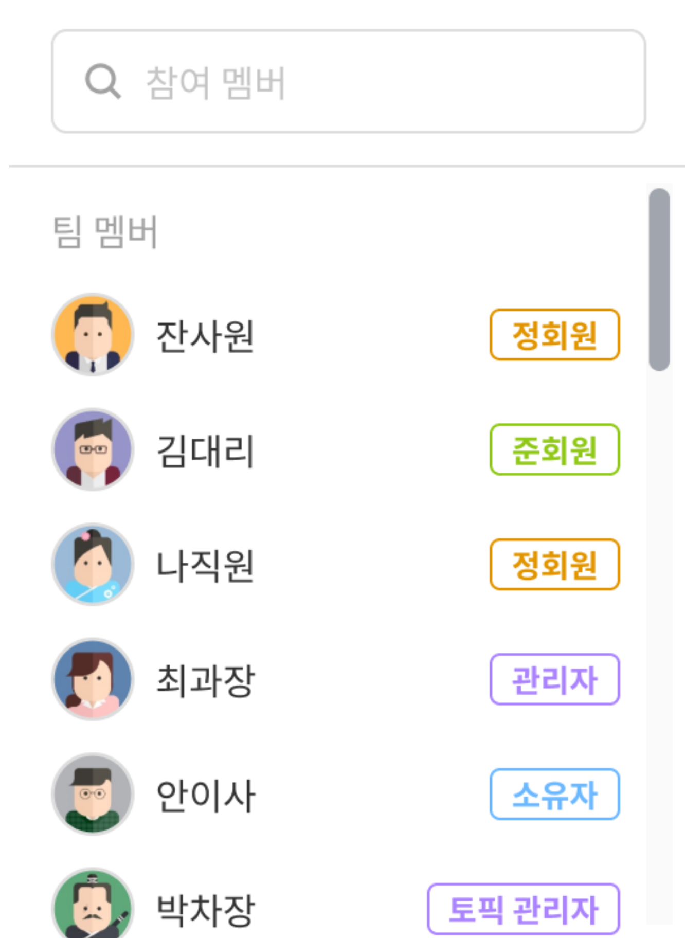 권한과는 상관없이 노출되어, 참여 멤버가 많으면 토픽 관리자를 파악하기에 어려웠습니다.