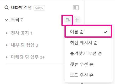 1.토픽 목록 상단의 보기 옵션을 [이름 순]으로 정렬 해주세요.