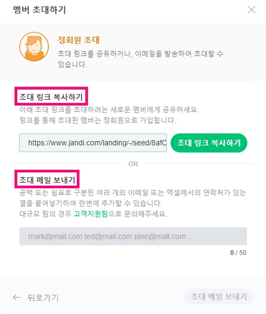 *초대 링크 기능은 유료 플랜에서 이용이 가능합니다.