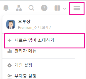 1. 잔디 상단 [≡] - [+ 새로운 멤버 초대하기] 버튼을 클릭합니다.