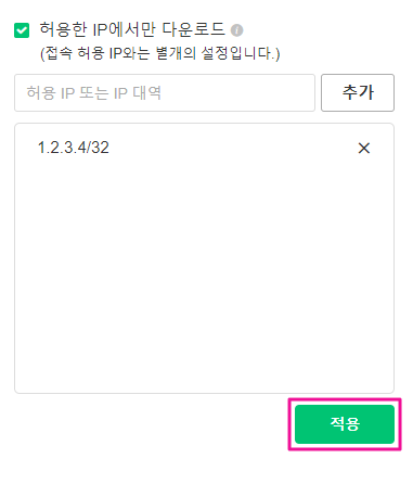 허용한 IP에서만 다운로드 (*접속 허용 IP와는 별개의 설정입니다)