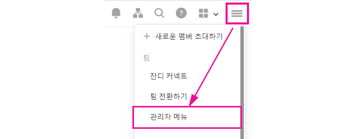 1. 우측 상단에서 [≡] > [관리자 메뉴] 로 이동해주세요.