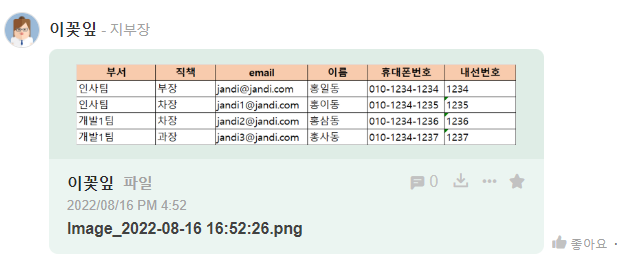 3. 표의 내용을 이미지로 잔디에 업로드할 수 있습니다.