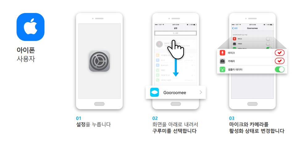카메라와 마이크 장치에 대한 사용권한에 “승인 안 함”을 선택한 경우 아래와 같이 변경해주세요.