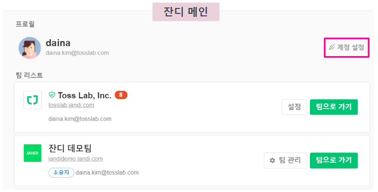 잔디 앱 상단 [=] > [잔디 메인으로] > 잔디 메인 화면 우측 상단 [계정 설정]으로 들어갑니다.