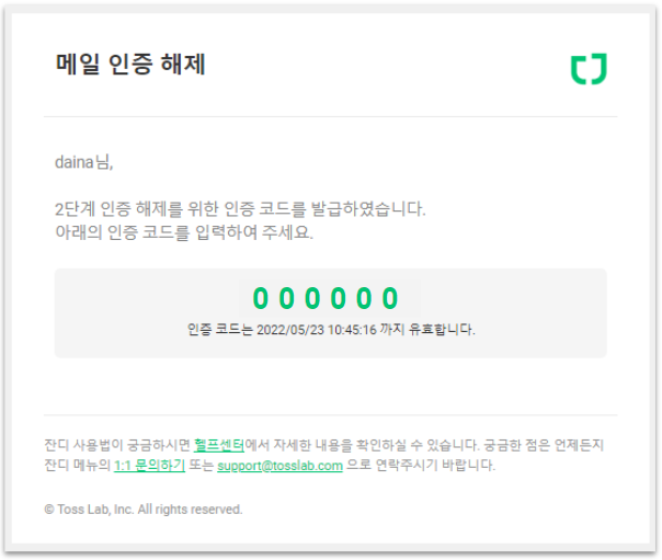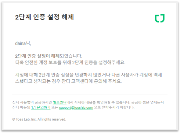 2단계 인증 해제 시, 안내 메일이 발송됩니다.