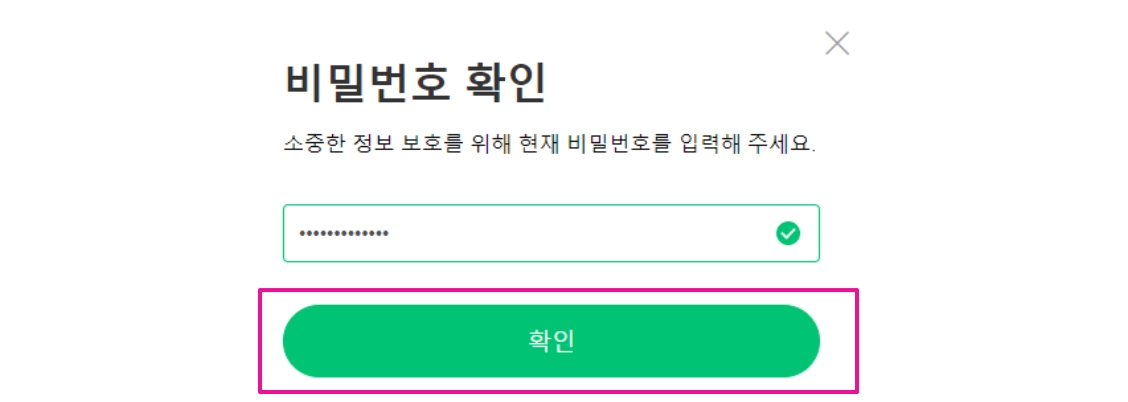 2. 잔디 계정의 비밀번호를 입력 후, [확인] 버튼을 눌러주세요.