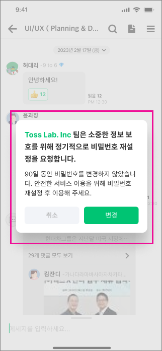 보안 강화를 위해 멤버의 비밀번호 변경을 권장하고 싶어요