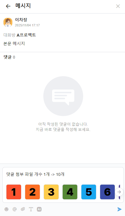보드뷰와 챗뷰, 채팅 모든 대화방에서 댓글 파일 첨부 개수가 1개에서 10개로 변경되었습니다.