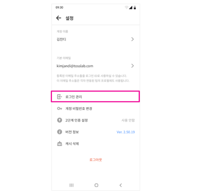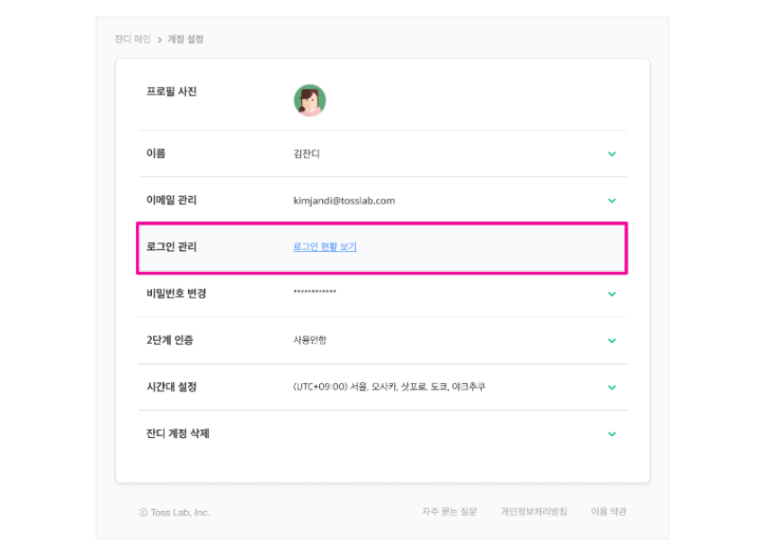 잔디의 보안 강화를 위해 로그인 계정 정보를 확인하고 관리하는 기능이 새롭게 추가되었습니다.