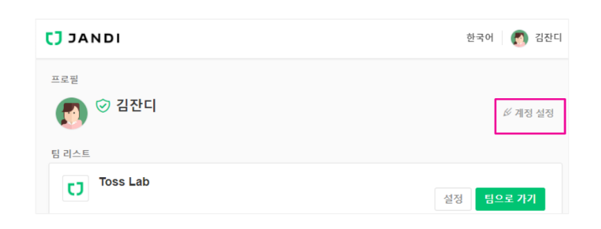 1. 잔디 메인화면 > 계정 설정