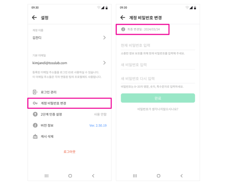 2. 계정 비밀번호 변경 > 최종 변경일