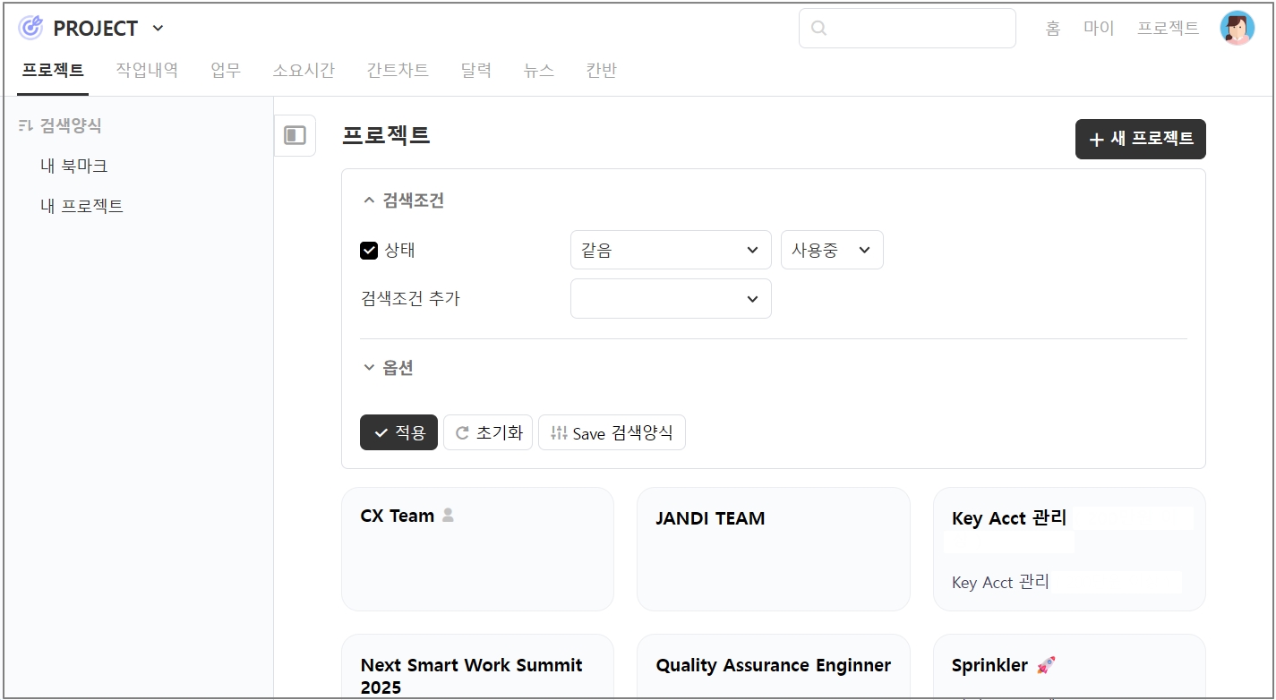북마크 추가 시 프로젝트 리스트에서 북마크 된 프로젝트가 우선 노출됩니다.