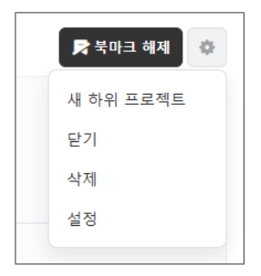 하위 프로젝트를 생성하거나, 프로젝트 닫기, 삭제, 설정을 변경할 수 있습니다.