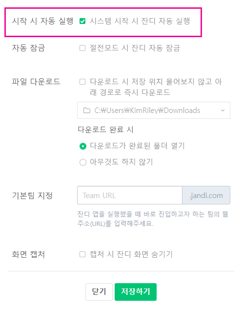 2. [시작 시 자동 실행]에서 체크한 후 저장해 주세요