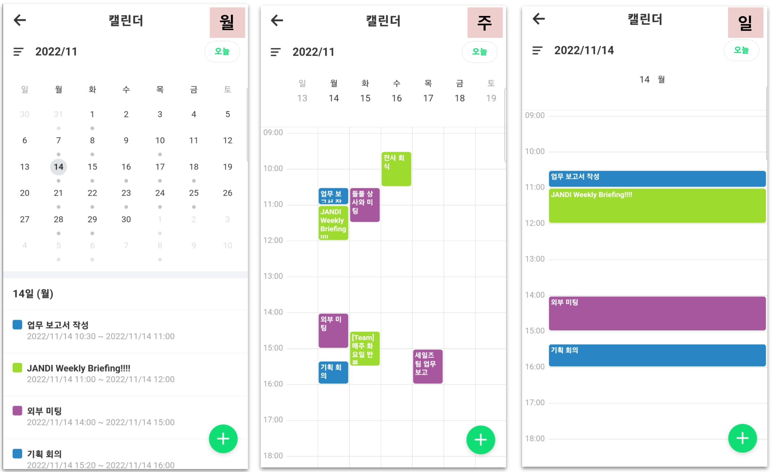 일별 : 하루 일정을 시간대별로 볼 수 있습니다.