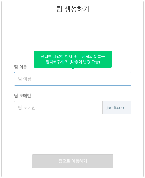 * 팀은 잔디에서 협업할 멤버들이 소속되는 회사나 단체를 의미합니다.