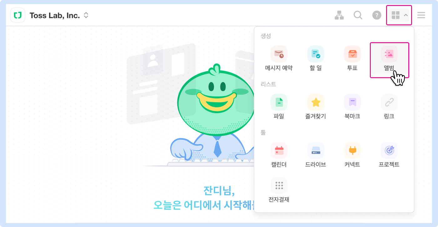 ※ 앨범은 채팅 및 챗 뷰 토픽에서만 공유할 수 있습니다.