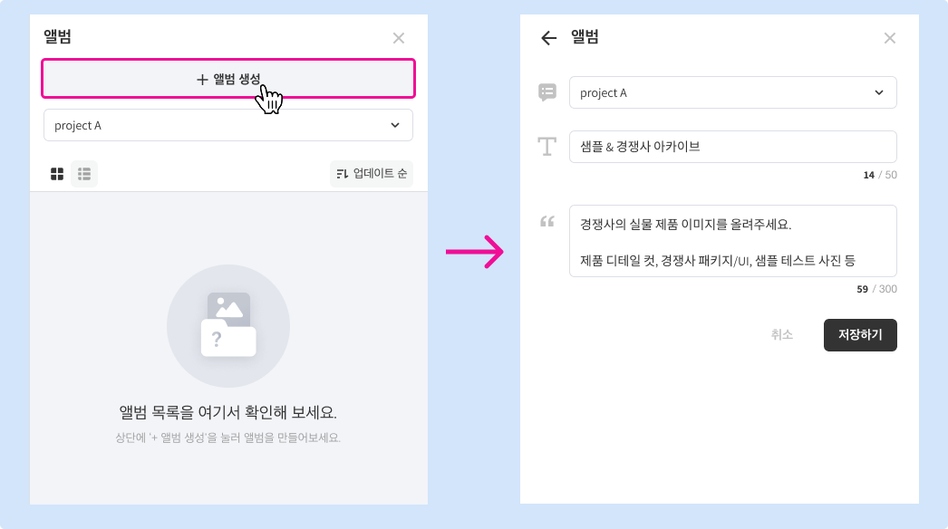 ※ 앨범 기능은 유료 플랜에서만 제공됩니다.