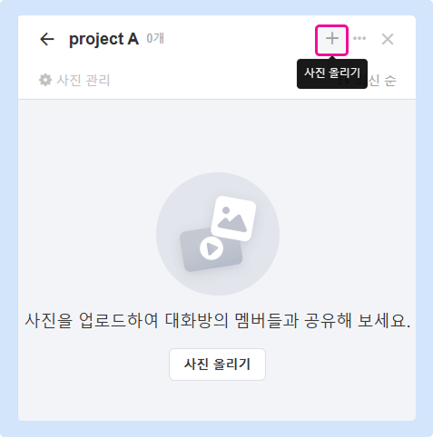 드래그 & 드롭 또는 우측 상단 '+'(사진 올리기) 버튼을 클릭해 업로드할 수 있습니다.