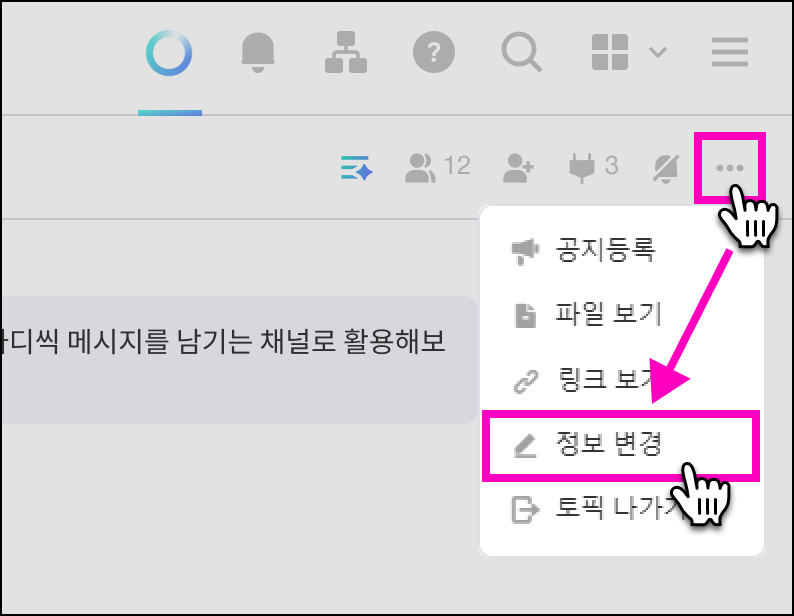 사용 방법 : 토픽 내부 우측 상단 더보기[...] > [정보 변경] > [토픽 보관] > [완료]