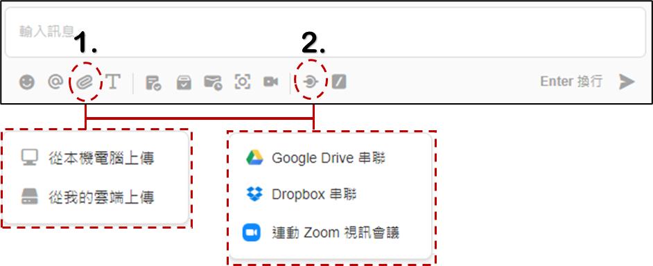 如果檔案超過 1 GB,您可以使用 Google 雲端或 Dropbox 等將其串聯至到 JANDI。