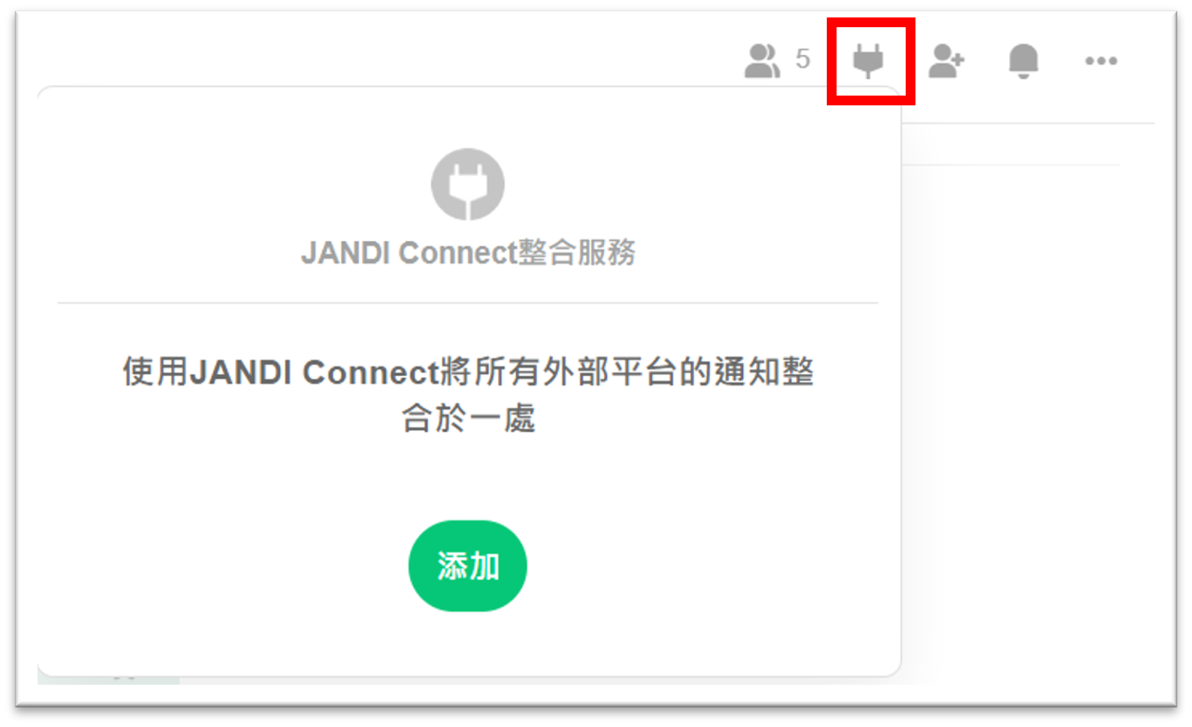 1. 於議題視窗上方或右側工具列點擊 [JANDI Connect] 插頭圖示。