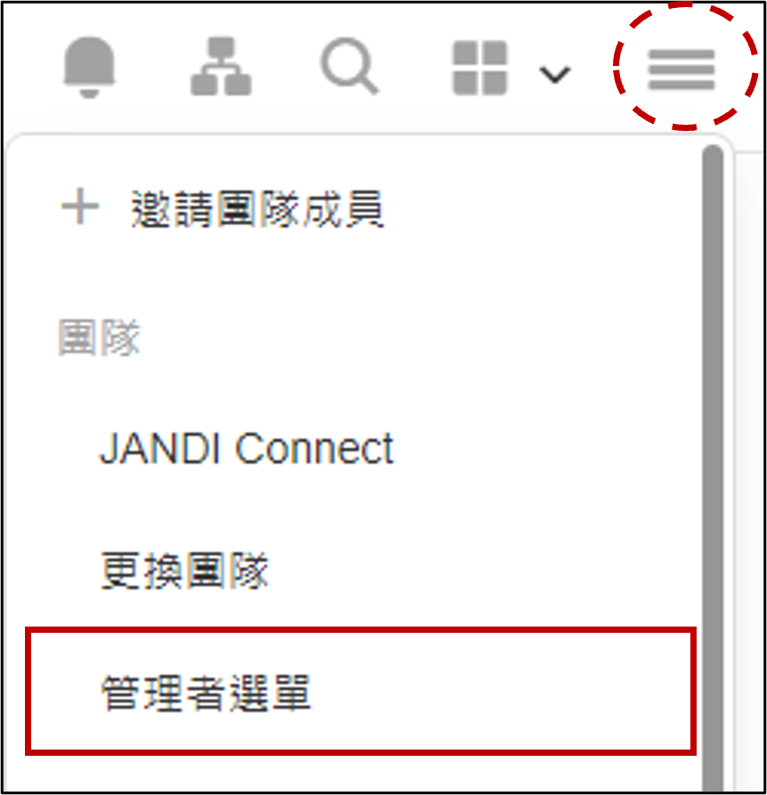 💡操作方式:點擊 JANDI 介面右上角 [三] - 點擊 [管理者選單]