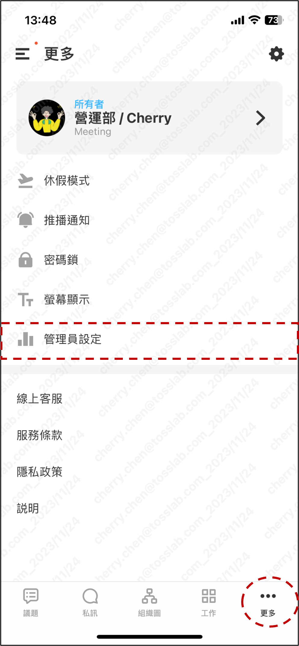 💡操作方式: JANDI 介面右下角 [...更多] - 點擊 [管理員設定]