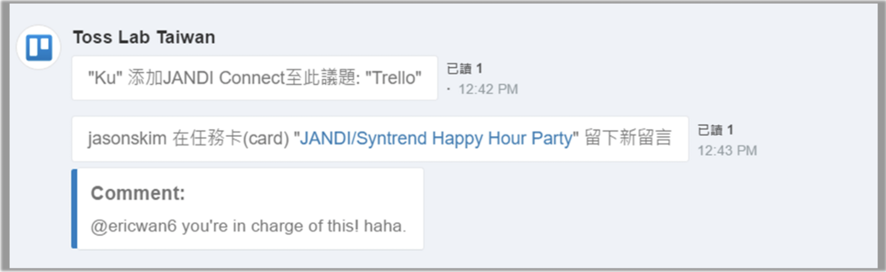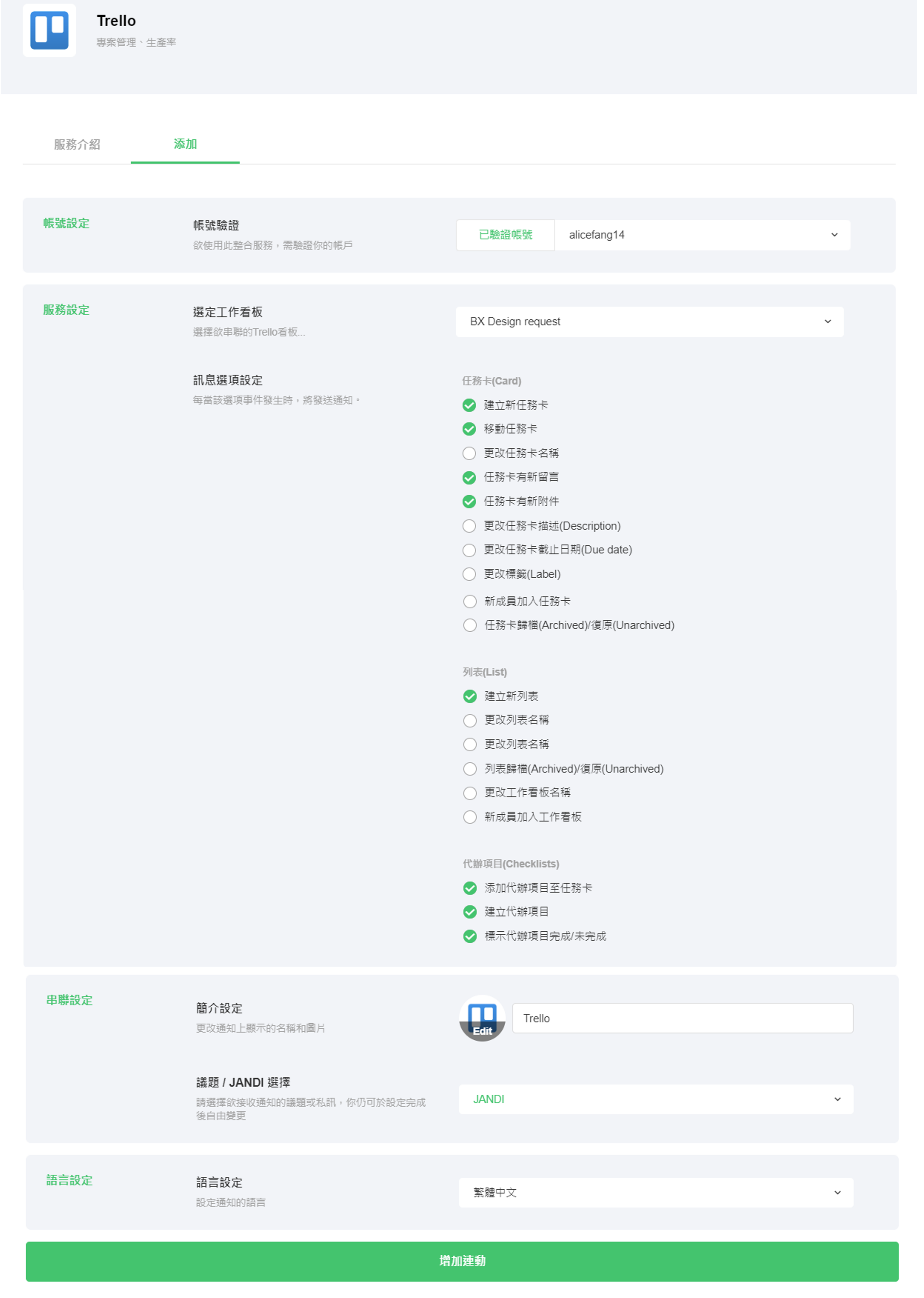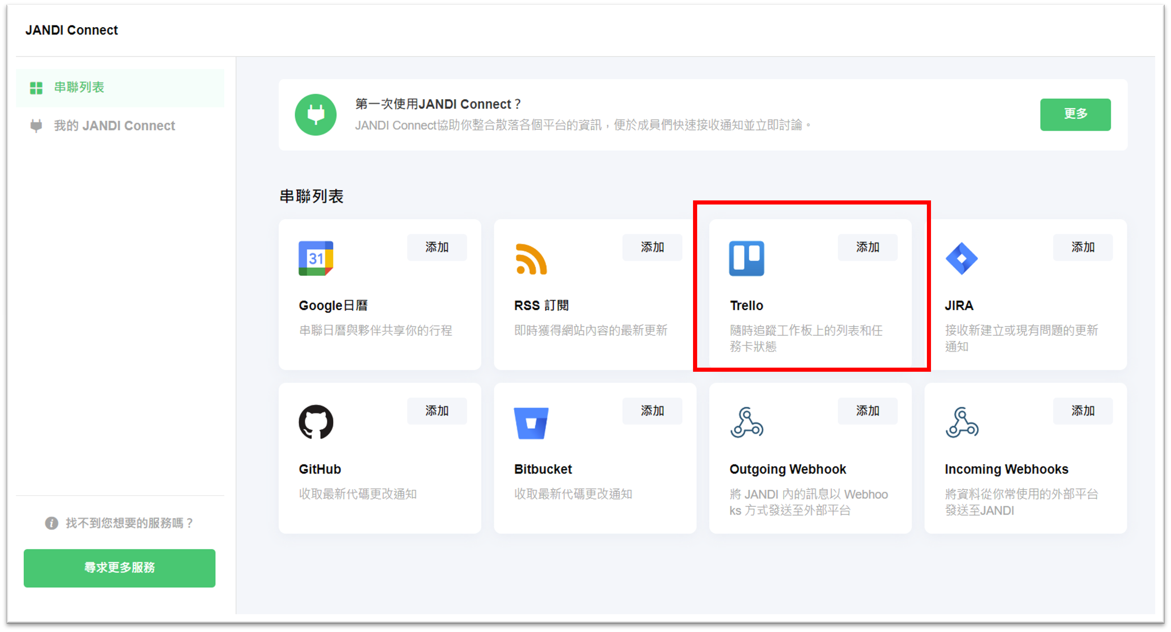 <於 JANDI 整合 Trello>