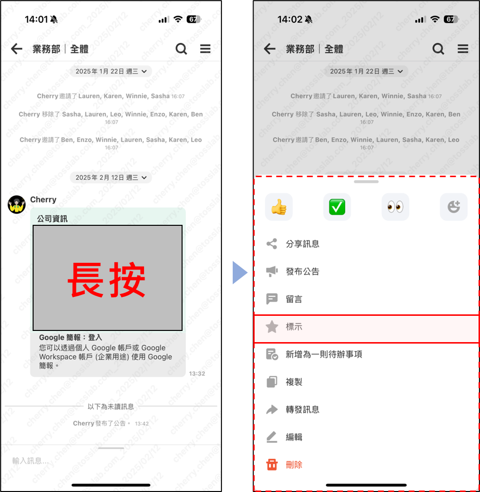 私訊:標記後,該私訊將優先顯示,讓重要對話不錯過。