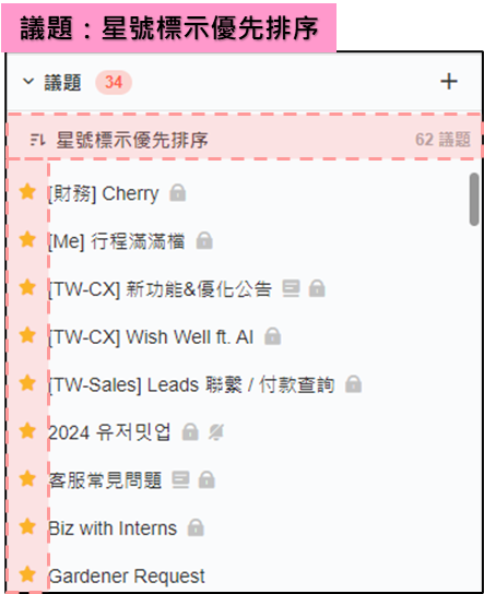議題:標記後,議題將優先排序於清單頂端,方便快速進入。