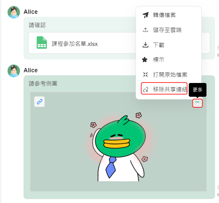 *如果您想刪除已經建立的外部連結,請使用 [...]更多 > [移除共享連結],將連結刪除。