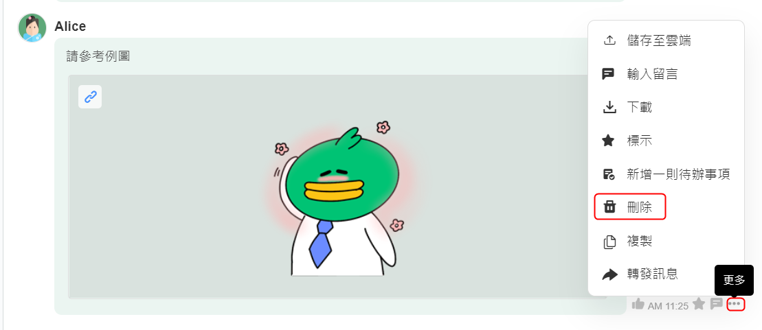 選擇想要刪除的檔案,點擊檔案右上方 [...] 更多,選擇刪除即可。