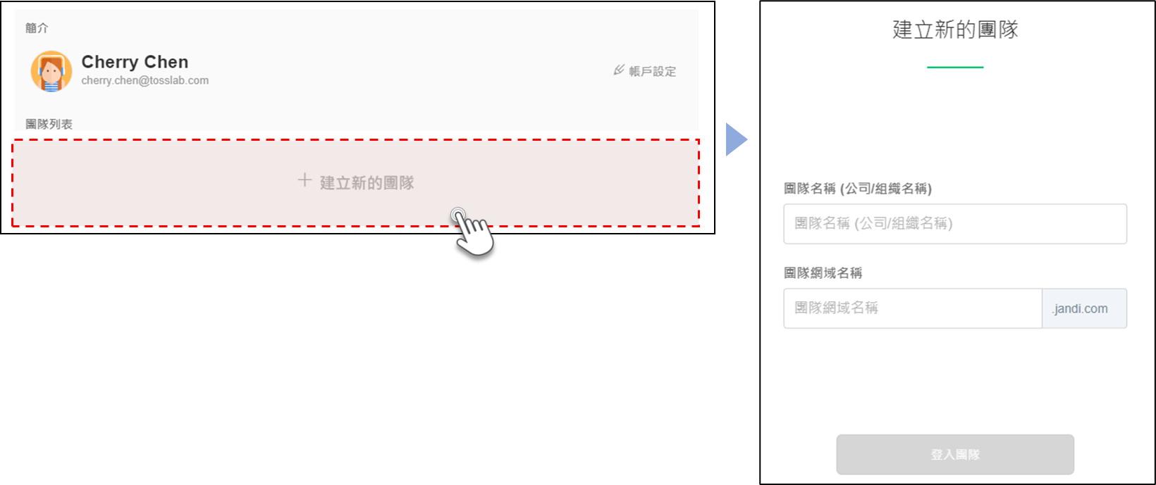 Tips: 團隊網域是每個團隊的專屬入口,符合公司或組織名稱的網域,便於團隊成員使用與記憶。