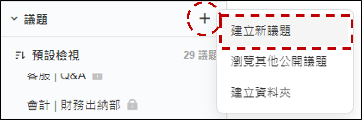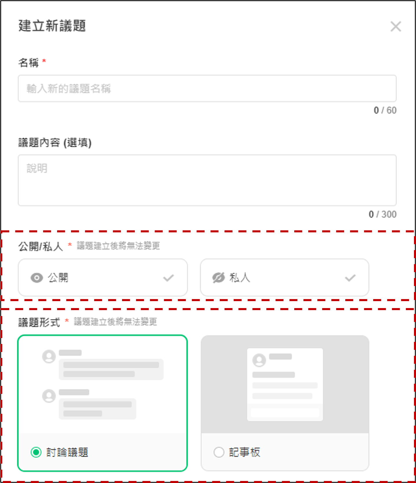 📌要注意:一旦完成建立議題,議題權限和議題類型便無法再變更。