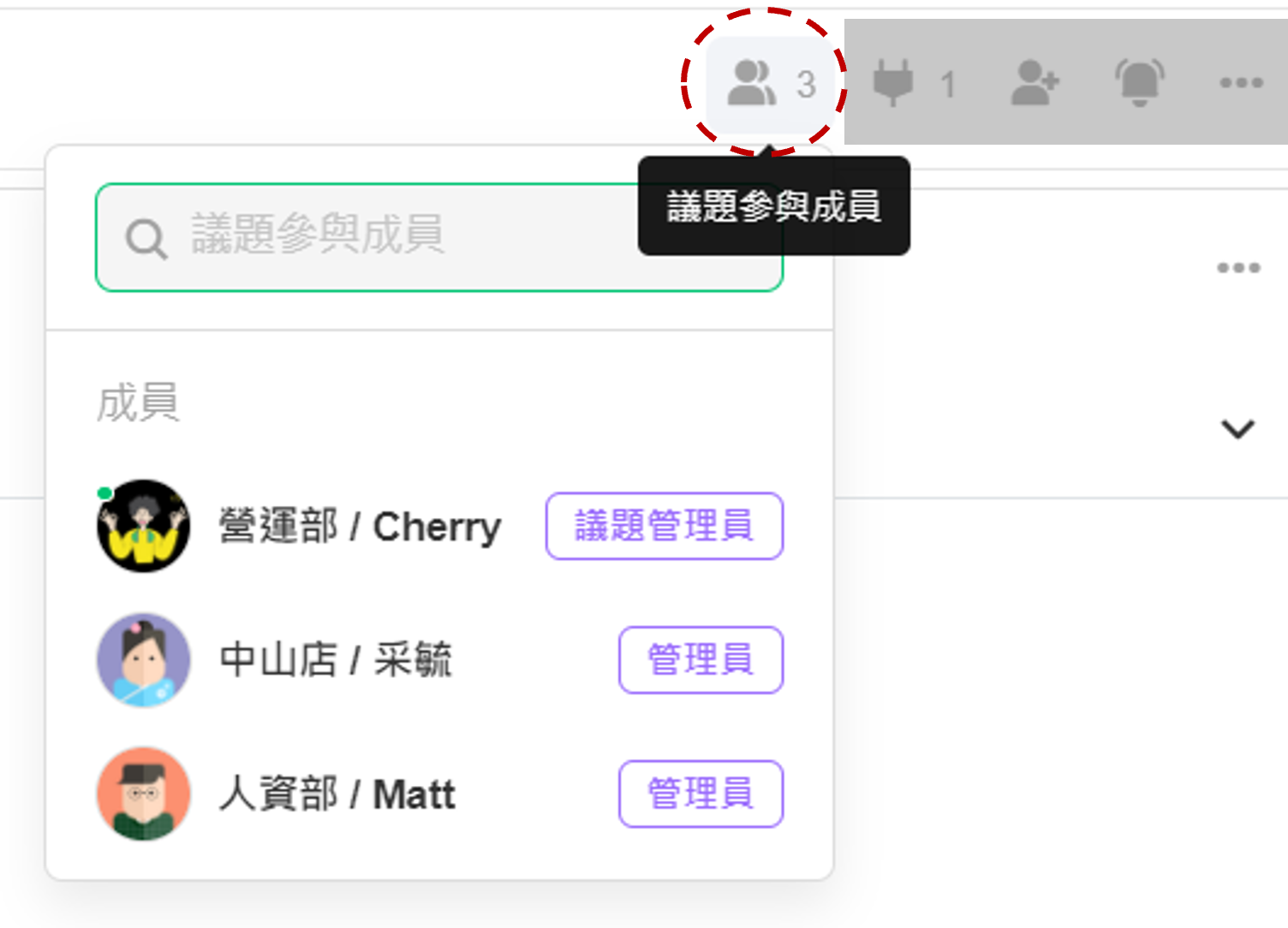 以部門、專案、分店為單位建立議題,並且把相關成員邀請加入。好處是可以在議題裡回溯訊息和檔案,避免即時通訊內訊息遺失的風險。