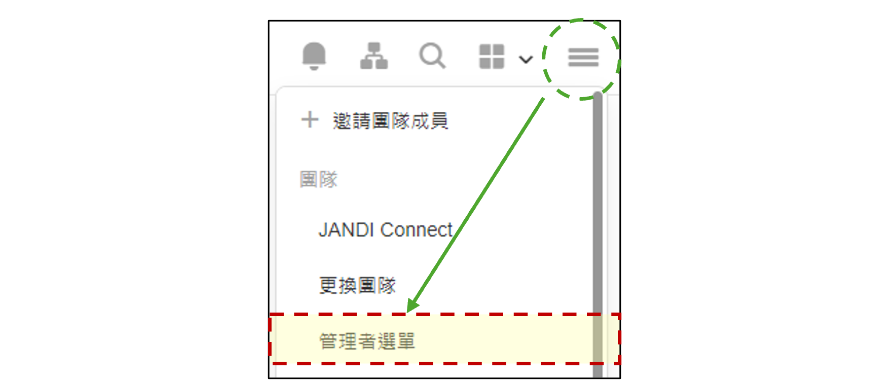 JANDI 右上角 [三] > 點擊 [管理者選單]