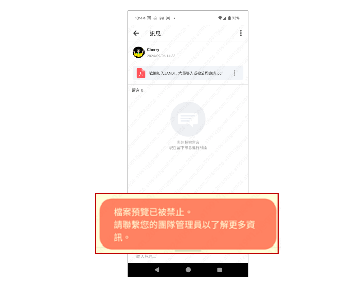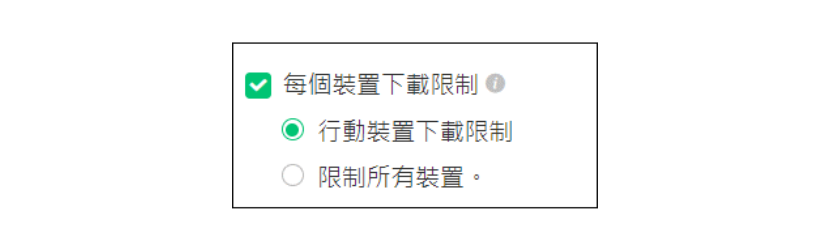 當設定行動裝置下載限制後,使用者將無法在手機上下載檔案。