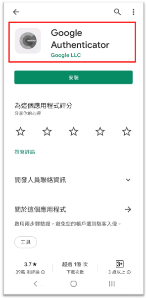 於應用程式商店中搜尋OTP後下載並安裝。各種形式之OTP應用程式皆可使用,為方便使用,建議下載Google Authenticator。