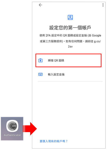 3. 執行下載的OTP應用程式並掃描畫面上的QR Code。