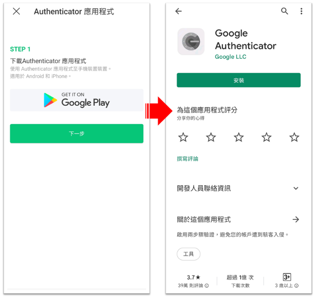 2. 為了進行應用程式驗證,請至 App Store / Google Play Store下載OTP應用程式。